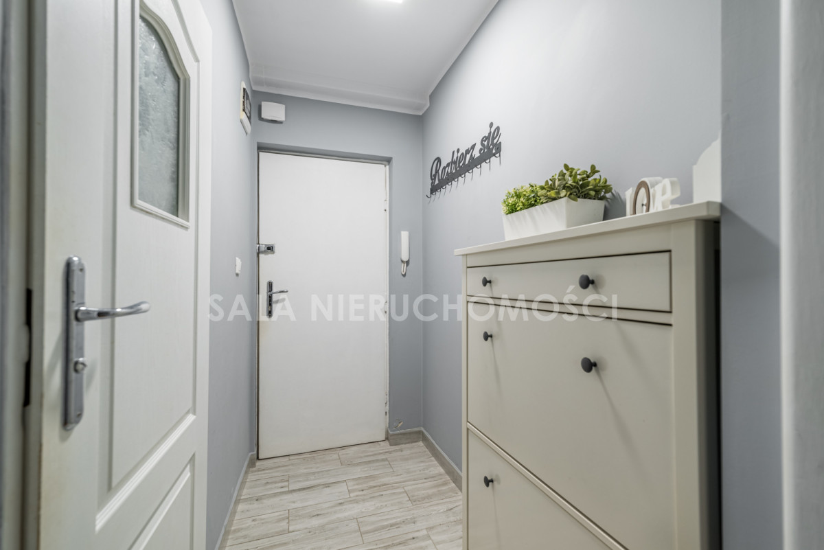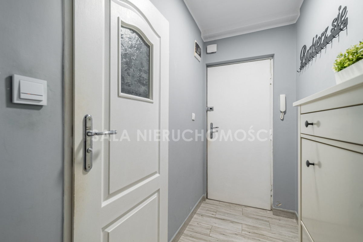 Mieszkanie składa się z pokoju dziennego, sypialni, kuchni, łazienki z wc oraz przedpokoju. Całość całkowicie umeblowana w meble oraz sprzęty AGD. W sypialni duże łóżko oraz bardzo pojemna szafa typu Komandor. W kuchni meble w zabudowie, kuchenka gazowo elektryczna oraz lodówka. W łazience prysznic oraz pralka.